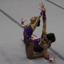 Our Performance Squads train in Acrobatic Gymnastics, a competitive discipline where partnerships and groups of gymnasts work together to perform choreographed routines. Routines combine dynamic somersaults, balance skills, dance, and expressive movement, all set to music.